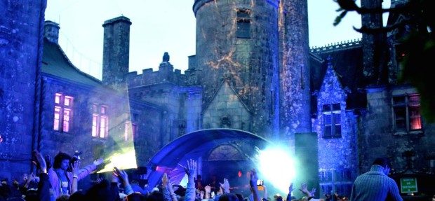 Il fut impossible, dès notre arrivée sur site, de manquer le massif mapping vidéo qui venait animer la tour dominant la cour du château. Impossible non plus de ne pas perdre plusieurs minutes, hypnotisé par l’habillage lumineux de la bâtisse, de ses fenêtres et du parc. Impossible, enfin, de ne pas perdre ses repères au milieu d’une cour de château ou la définition sonore est juste identique, voir supérieure à celle d’un club, la voûte céleste en moins..