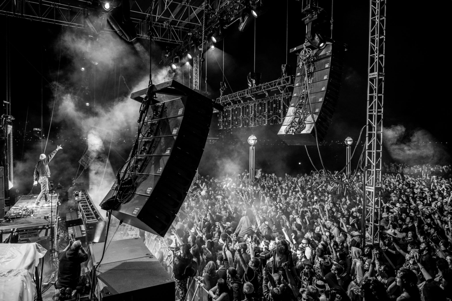Un peu fatiguée par le voyage, je me sens revigorée lorsque le site apparaît. En effet c’est la surprise d’entrée, les photos laissaient imaginer quelque chose de beau et ancien mais pas un truc pareil. On traverse un village mignon pour emprunter un escalator (!) qui amène au pied des remparts. À l’intérieur, une chapelle, des bars, quelques food trucks, et surtout une belle scène sur laquelle Robert Henke est en train de projeter des rayons lasers et de jouer en live pour l’ouverture du festival, le résultat est malade ! Je suis ensuite contente d’entendre Paul Kalkbrenner, on se balade un peu, il n’y a qu’une seule scène mais une grande partie « parc » où l’on peut chill un peu et s’asseoir, le lieu est fantastique et on peut se poser à droite et à gauche, il y a même des baby-foots à disposition !