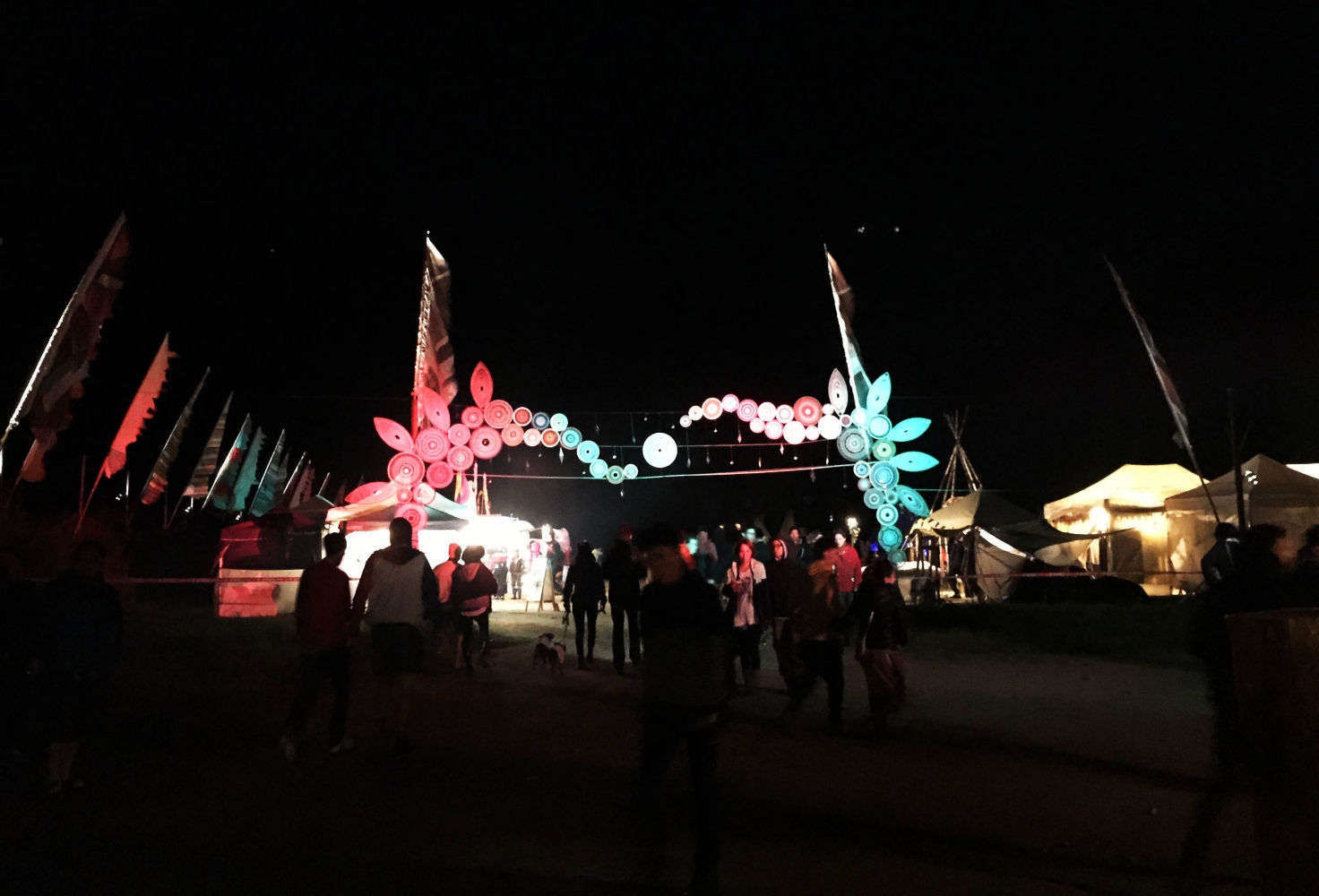 Après avoir installé la tente, enfilé des vêtements plus chauds pour la soirée (il fait très bon la journée mais la nuit tombe tôt, vers 18h, et est très fraiche), il est temps de se diriger vers le dancefloor pour aller écouter le premier live qui ne va pas tarder à commencer. Certains en profitent pour prendre à diner.